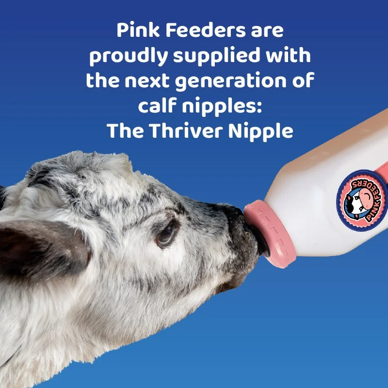 Pink Feeders come with Skellerup Thriver Calf Teats. Designed for optimal milk flow, a natural feeding experience, and leak prevention – Thriver teats set a new standard in Calf feeding.